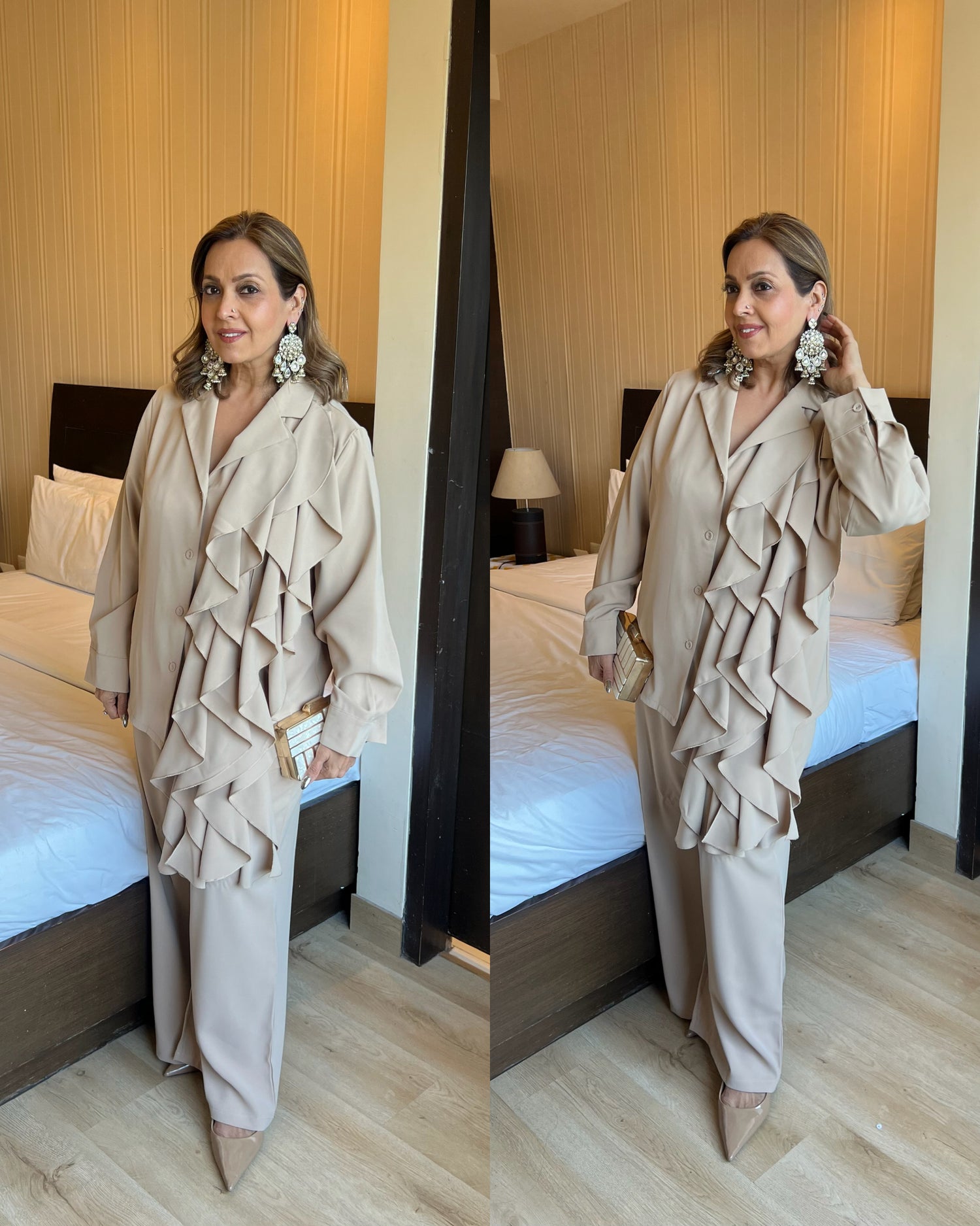 Nude beige frilly set