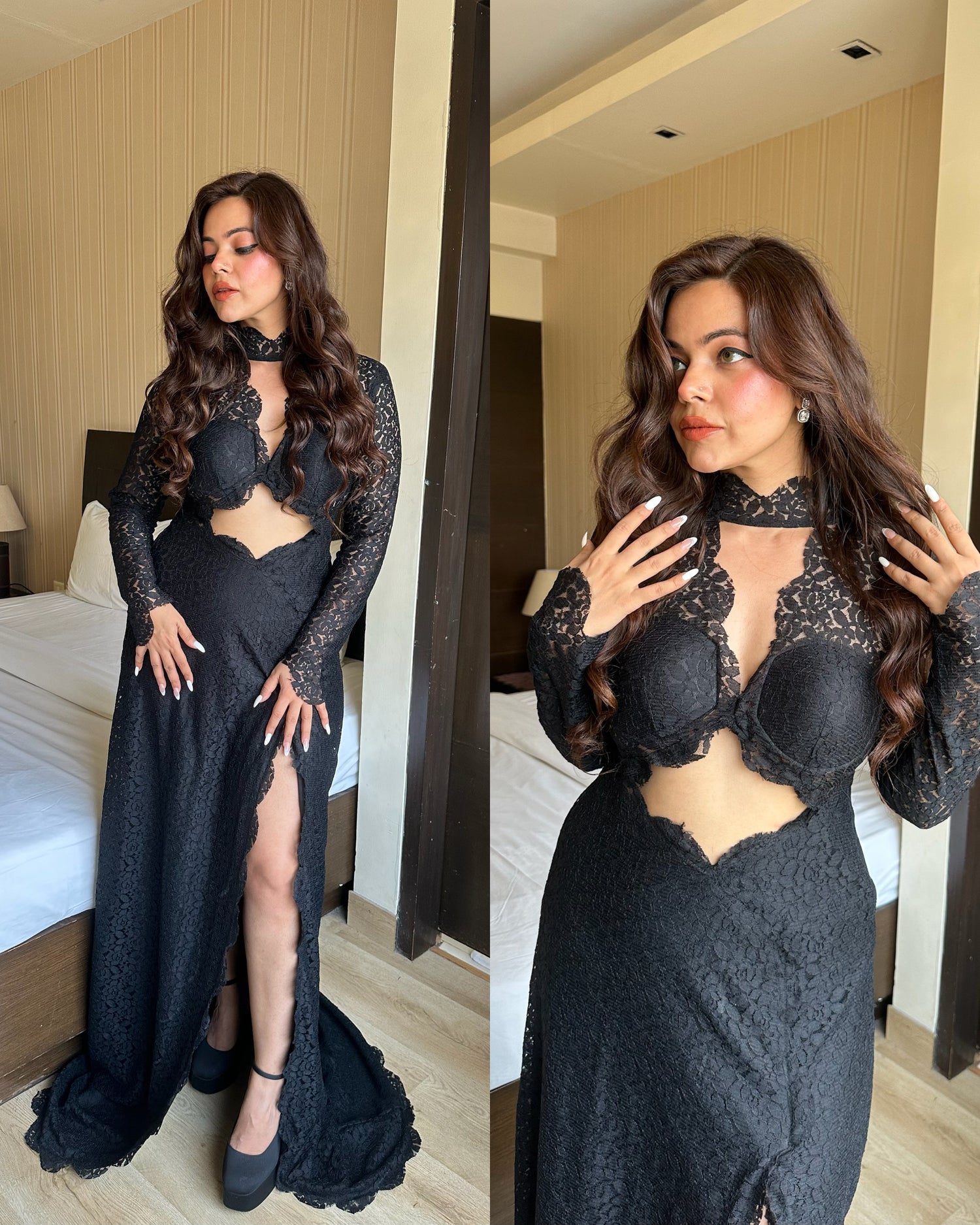 Style : elongated trail backless gown