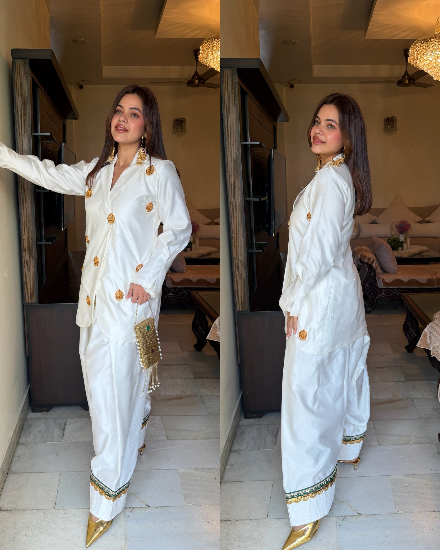 White silk farsi gold work set